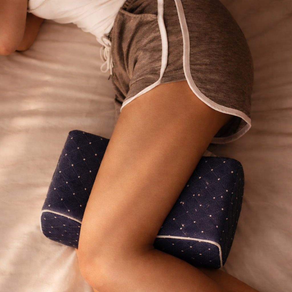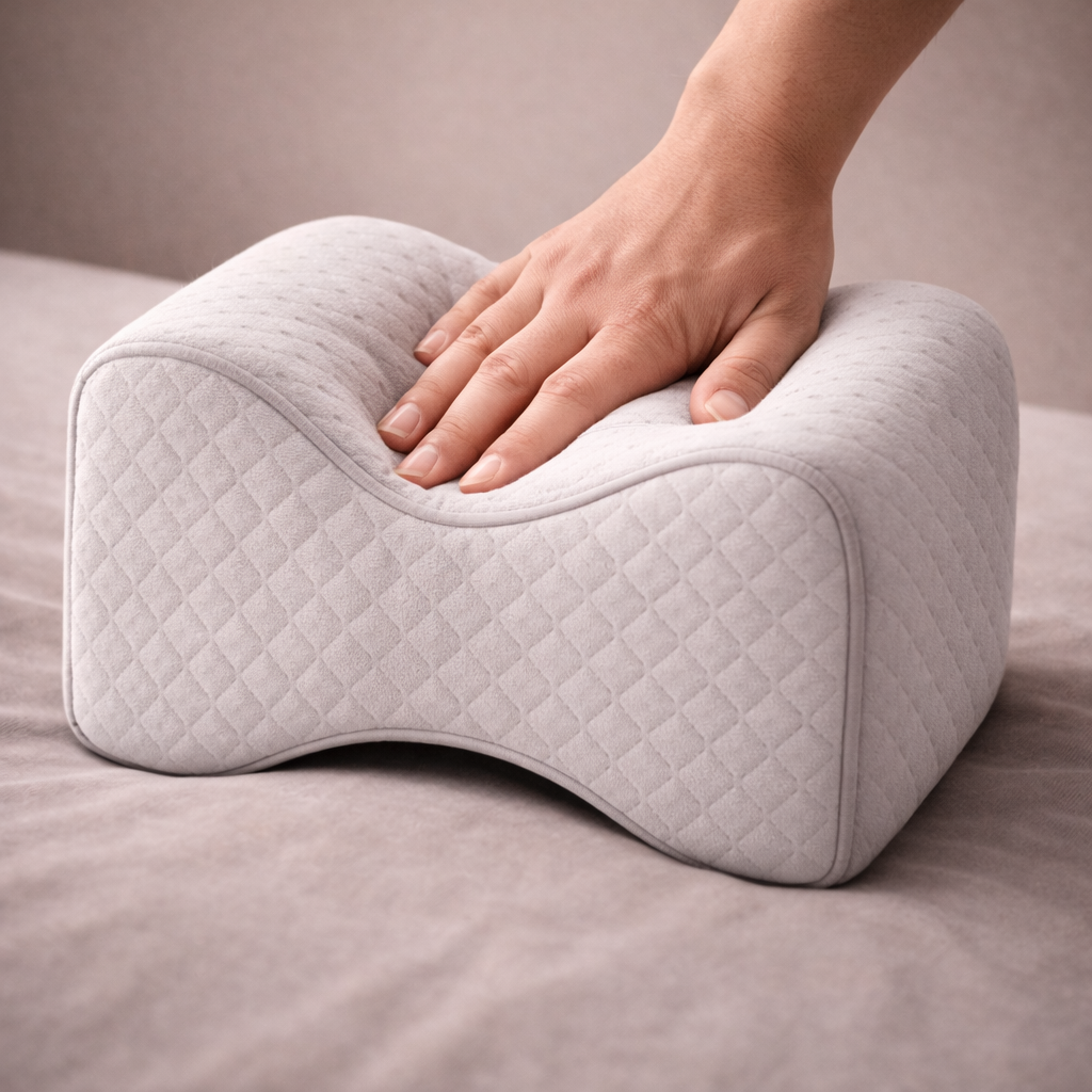 A regular pillow isn’t designed to sit securely between the knees and often slips, flattens, or feels bulky during the night. A knee pillow is shaped specifically to fit between the legs, helping it stay in place and provide more consistent comfort while you sleep on your side.